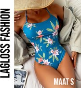 Maillot de bain tropical LaGloss® – Blauw à Fleurs – Maillot une pièce flatteur – Taille S