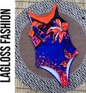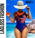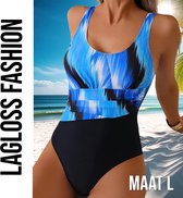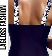 LaGloss® Maillot de bain Fleurs tropical Blauw - Maillot de bain de plage d'été - 1 pièce - Taille L - Piscine