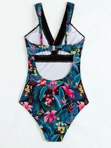 Maillot de bain LaGloss® Zwart Blauw – Imprimé tropical et décolleté en V profond – Maillot de bain femme taille L