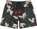 Short de bain de Kultivate. Le maillot de bain a une ceinture élastiquée avec un cordon de serrage et une poche des deux kanten . De plus, le maillot de bain est doublé et possède une petite poche à l'intérieur. Le tissu est lisse et fin.