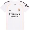 Si vous ne pouvez pas rester assis à la maison pendant un match du Real Madrid et que Mbappé tire des coups francs dans la cour de l'école. Alors ce maillot domicile Real Madrid enfant 25/26 - Mbappé est fait voor jou!