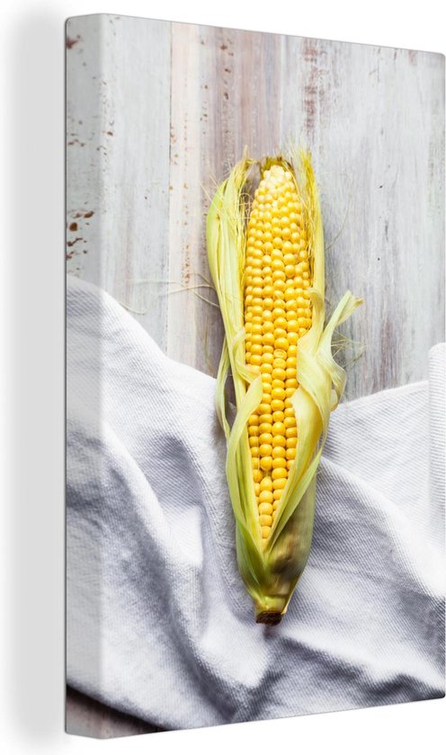 Maïs frais et bio avec un torchon de cuisine Toile 40x60 cm - Tirage photo sur toile (Décoration murale salon / chambre)