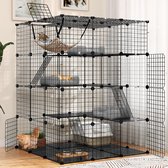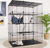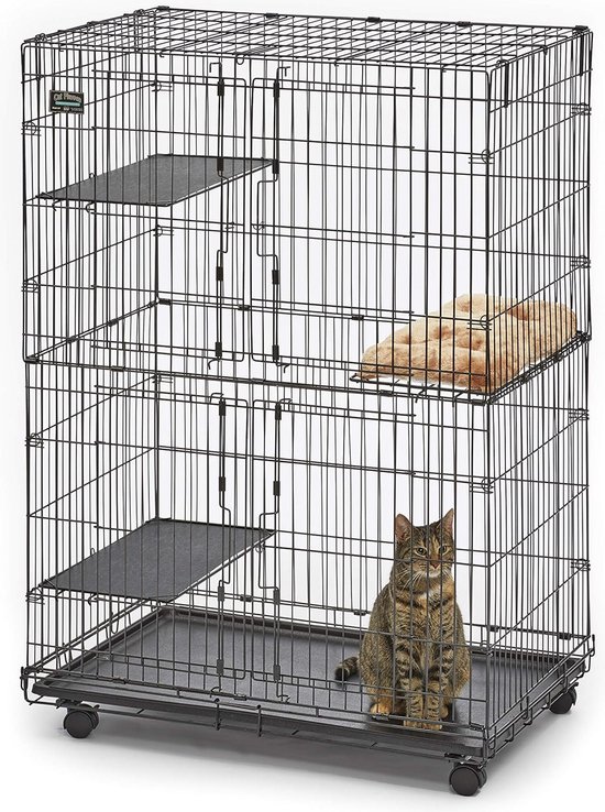 Goodivery ® Cette maisonnette pour chat offre un environnement spacieux et sûr pour vos chats bien-aimés. Mesurant environ 92 x 60 x 128 cm (L x l x H), il est idéal pour accueillir 1 à 3 chats. La conception comprend un lit pour chat confortable, un plateau inférieur en plastique facile à retirer et étanche, trois plates-formes de repos réglables et quatre roues verrouillables pour un déplacement facile dans la maison. L'accès est facile grâce aux deux grandes portes avant avec serrure de sécurité, qui facilitent également le nettoyage du bac à litière. Le plateau inférieur en plastique peut être facilement retiré pour faciliter le nettoyage. La maisonnette est faite de fil métallique avec un revêtement noir pour éviter la rouille. L'épaisseur des fils est de 5,8 mm, 4,6 mm et 2,1 mm, avec une distance d'environ 2,5 x 14 cm entre les fils. La maisonnette pèse 18 kg une fois entièrement assemblée.