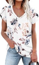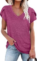 Manches pour Femmes - Haut Élégant - Chemise Classique Décontractée Quotidienne Impression Causale Col en V Chemise Haute Manches Pétale Corail Taille M
