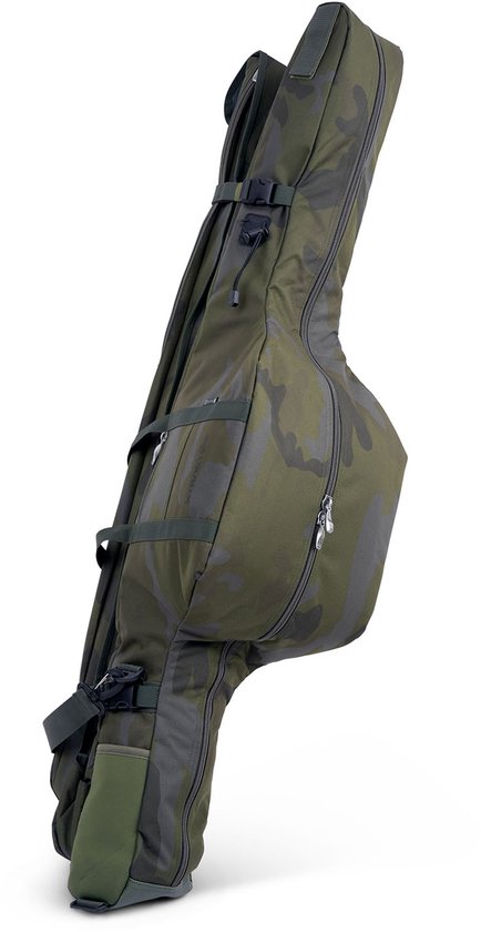 Les poches à moulinet généreuses conviennent à la plupart des cannes télescopiques populaires, quelle que soit la longueur du manche. Les compartiments centraux sont dotés de séparateurs complets, de sorte que vos cannes restent protégées des dommages. Le matériau camouflage durable HD 600D PVC SK-TEK offre une résistance supplémentaire et une résistance à l'eau, de sorte que votre équipement est bien protégé dans toutes les conditions.