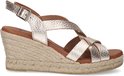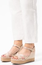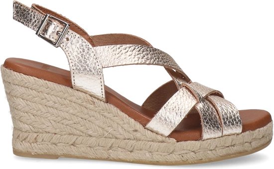 Chaussures compensées en cuir doré métallisé de Manfield. Ces escarpins sont en cuir et nous vous recommandons donc d'entretenir et de protéger ces escarpins avec le Collonil Carbon Pro. Ces escarpins sont tissés et ont une hauteur de talon de 8 cm et offrent un look estival.