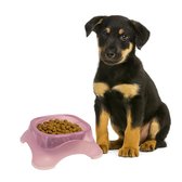 Trendy en plastique à double bol de nourriture pour les chiens ou les chats à la maison et sur la route.