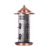 Mangeoire à oiseaux suspendue d'extérieur avec piège à graines, mangeoire à oiseaux cardinal à 6 ports avec finition cuivre brossé 35 cm (graines non incluses)