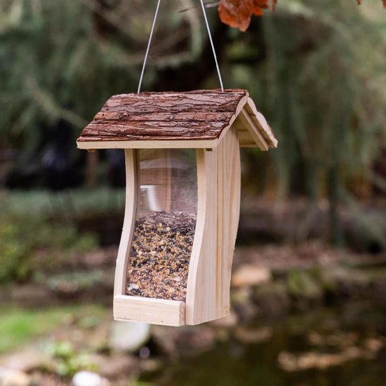 Mangeoire à oiseaux suspendue en bois - nichoir à suspendre - 21 x 20 cm - hauteur 30 cm