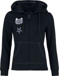 Manteau à capuche noir Gothicana avec écusson chat cousu - Femme - L