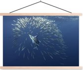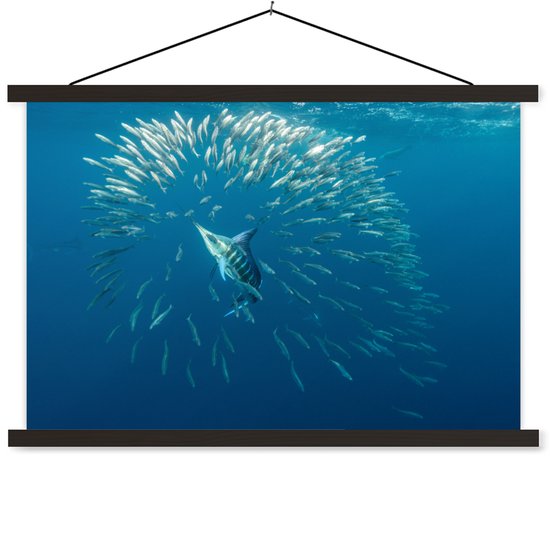 Marlin et un joint entre les sardines affiche textielposter lattes noires 90x60 cm - Tirage photo sur plaque scolaire (décoration murale salon / chambre)