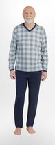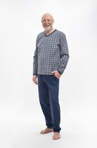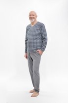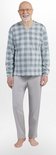 Pyjama en coton pour homme. T-shirt à carreaux à manches longues. V en V. L'ensemble est complété par un pantalon long uniforme avec des poches confortables. Emballé dans un sac en aluminium.