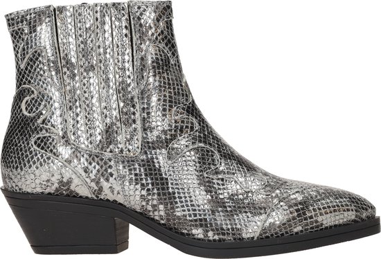Bottines pour femmes de Maruti. Bottines de style occidental. Matériau : combinaison de cuir imprimé python. Doublure : partie cuir. en partie textile. Couleur : combinaison argentée. Semelle: antidérapante. Hauteur du talon: environ 4 cm.