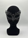 Magnifique masque en kanten . Ce masque pour les yeux en kanten est noir et est orné de magnifiques strass scintillants.
