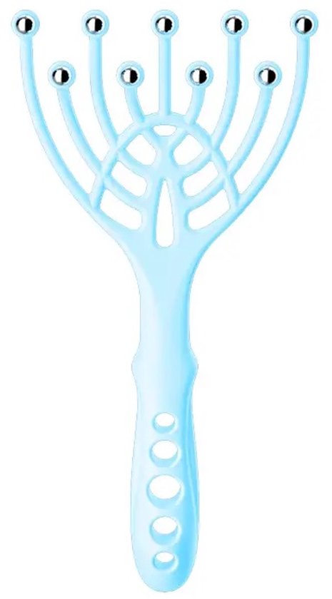 Masseur de cuir chevelu avec 9 boules de massage en métal | Massage de la tête rotatif | Masseur de cuir chevelu | Réduit le stress | Siliconen et acier inoxydable | Blauw