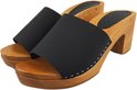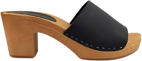Matt black heels - hak 7cm - nubuck leer - houten zool - open toe - maat 35