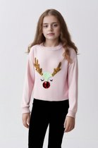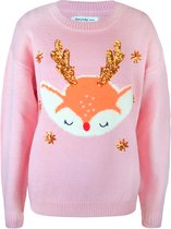 Mauvais pull de Noël / Pull Filles avec Glitter | Renne | Rose | Taille 146
