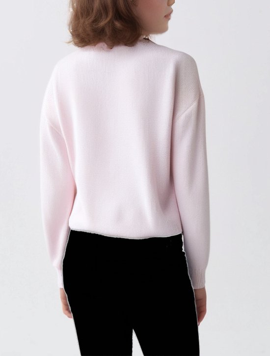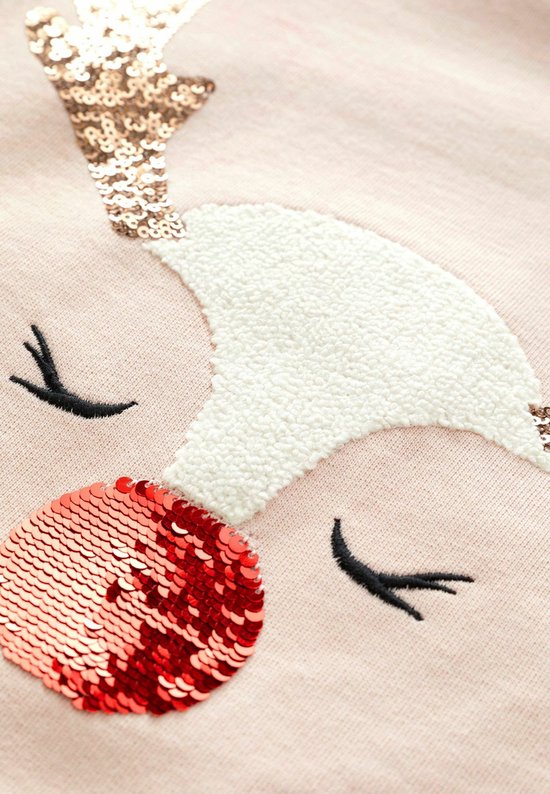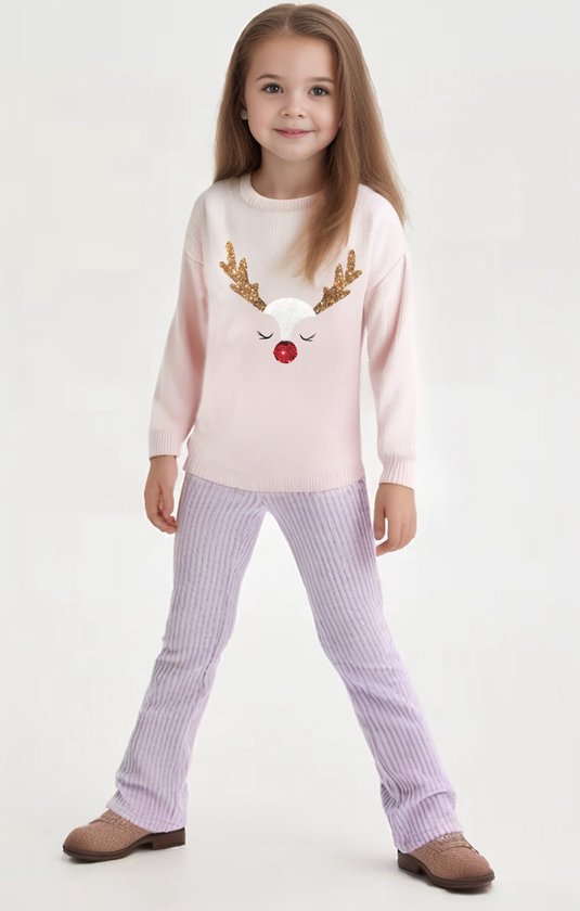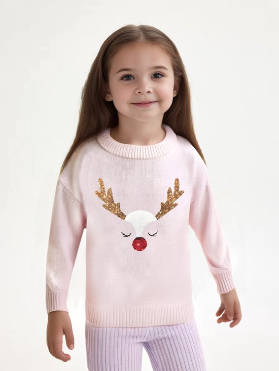 Magnifique pull de Noël pour fille, en maille soft . coupe régulière et confortable, manches longues et bas terminés par des poignets sur le devant, il y a une image d'un renne en séquence.