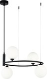 Design industriel moderne : cette suspension présente un cadre en métal noir élégant et des abat-jour sphériques en verre blanc, parfaits pour ajouter une touche contemporaine à votre salon, chambre, cuisine, salle à manger, bureau, bureau, couloir, café ou restaurant. Dimensions polyvalentes : Mesurant 184 cm de hauteur, 39 cm de longueur et 43,5 cm de largeur, cette lampe est conçue pour faire une déclaration sans encombrer votre espace. La hauteur de la chaîne est réglable jusqu'à 153 cm pour s'adapter à différentes hauteurs de plafond. Siècle des Lumières adaptable : nécessite 4 ampoules G9 (non incluses) d'un maximum de 25 watts chacune, vous permettant de choisir des ampoules en fonction de la luminosité et de la température de couleur souhaitées. Construction durable : le cadre en métal noir robuste assure la durabilité, tandis que les élégants abat-jour sphériques en verre blanc fournissent une lumière douce et diffuse qui améliore l'ambiance de n'importe quelle pièce. Installation facile : conçue pour une installation facile, cette suspension est livrée avec tout le matériel et les instructions nécessaires. , garantissant qu'il s'agit d'un ajout sans tracas à votre maison ou espace commercial.