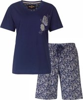 TESAD1307A Set Pyjama Pyjama short Femme Tenderness - Imprimé Floral - 100% Katoen Peigné - Bleu Marine - Tailles: L