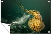 Méduse sur fond sombre affiche de jardin toile en vrac 60x90 cm - Toile de jardin / Toile d'extérieur / Peintures pour l'extérieur (décoration de jardin)