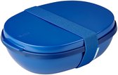 Lunch box Ellipse duo de couleur Nordic Black. Cette boîte à lunch verte élégante et robuste s'intègre parfaitement dans un mode de vie sain. Assez Groot pour les sandwichs et les salades savoureuses, mais aussi pour réchauffer un repas complet avec du riz ou des pâtes. Le duo Ellipse peut être utilisé au micro-ondes sans le compartiment ! Dans le compartiment spacieux, vous pouvez transporter du pain, des tomates ou des barres de muesli et il y a suffisamment d'espace pour les couverts. Vous pouvez emporter avec vous vinaigrettes, croûtons ou pignons de pin dans la mini box fournie et après utilisation, la lunch box Ellipse se met simplement au lave-vaisselle (sans élastique). Une belle bande décorative complète le duo Ellipse !