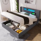 Merax Lit Double Queensize 160x200 cm avec Matras en Mousse Froide - Lit rembourré en Simili Cuir avec 4 tiroirs et LED- Siècle des Lumières - Zwart