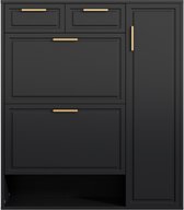 - Construction fixe : les panneaux en aggloméré de couleur chêne de l'armoire à chaussures sont fixés par des serrures à came qui offrent plus de stabilité ; placage facile d'entretien et résistant aux rayures pour la surface