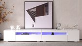 Meuble TV Moderne Haute Brillance - Meuble TV Wit avec Grain de Bois - Meuble TV Style Patchwork Biseauté - Longueur 170cm Blanc