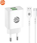 MG - Adaptateur USB avec câble - 2,4 A - Chargeur rapide avec câble - 2x Port USB avec câble de 1 m - USB vers Type-C - Wit