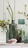 Vous pouvez donner à votre salon ou votre cuisine une touche élégante en un rien de temps avec la bouteille Guan de Mica Decorations. Ceci est la petite version des bouteilles en verre recyclées à la main populaires. C'est toujours une grosse bouteille, mais un peu plus pratique. L'utilisation de verre épais recyclé donne à la bouteille un beau jeu de couleur de lumière. Surtout un groupe de plusieurs bouteilles Guan produit un grand effet.