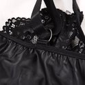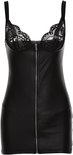 Entrez dans un monde de séduction et de classe avec«Séduction de minuit». Cette robe sensationnelle allie robustesse et sensualité dans un look irrésistible. L'aspect cuir élégant met en valeur vos courbes, tandis que la dentelle sur les bonnets ajoute une touche ludique et séduisante. Perfect pour un look audacieux lors d'une soirée excitante.