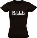 T-shirt femme noir avec imprimé blanc : MILF - Man I love Farming - Merveilleux cadeau pour l'agriculteur !
