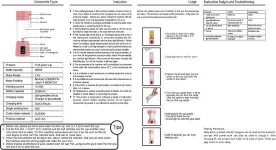 Le mélangeur à emporter convient aux milkshakes, smoothies, shakes protéinés ou protéinés, boissons au soja, jus de fruits, aliments pour bébés et glace pilée. Même les masques faciaux peuvent être préparés avec ce mélangeur.