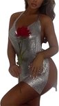 Mini robe avec fente en V- Argent - Brillant - Bling - Fête - Gala