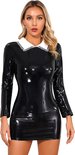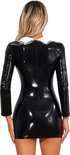 Mini robe en cuir érotique - Avec col satiné - Robe sexy - Cuir verni - Cuir PU - Vêtements pour femmes - Manches longues - Bonne qualité