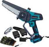 La mini tronçonneuse fonctionne avec une batterie de 1500 mAh par cellule de batterie, en plus elle a une puissance de 1500W. La combinaison de ces deux aspects et du puissant moteur électrique de la scie rend la mini tronçonneuse incroyablement solide, votre branche ou votre tronc d'arbre sera complètement scié en un rien de temps.