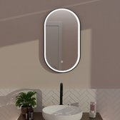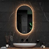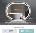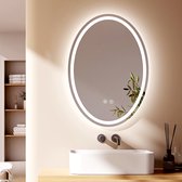 Miroir EMKE avec Siècle des Lumières - Ovale - Tactile et dimmable - 3 couleurs de lumière - Miroir de douche anti-condensation - 80 x 60 cm