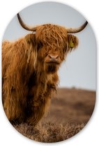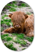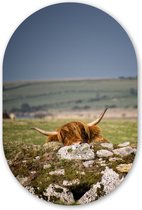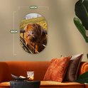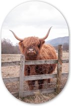 Miroir ovale - Décoration murale en plastique - Tableau ovale - Highlander écossais - Clôture - Herbe - 40x60 cm - Forme de miroir ovale sur plastique
