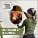 À propos de l'image : Ce montagnard écossais regarde à travers la fente d'une porte. L'animal est derrière une clôture.Spécifications produit