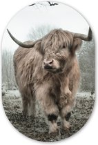 Miroir ovale mural - Décoration murale en plastique - Tableau ovale - Highlander écossais - Animaux - Nuages - Vache - Nature - 60x90 cm - Miroir ovale sur plastique
