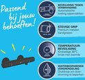 Sans trop de problèmes, j'ai pu remplacer mon ancien thermostat de douche par le nouveau Grohe Trend. De nombreuses fonctions sont intégrées au thermostat sans que cela soit perceptible au premier coup d'œil. Vous pouvez voir et sentir la qualité et si je peux croire Grohe, la peinture continuera à avoir l'air nieuw pendant des années. Jusqu’à présent, cette affirmation tient la route. Il est compact mais peut néanmoins faire beaucoup de choses, comme l'arrêt de sécurité pour le contrôle de la température et un limiteur de débit d'eau. Il vise principalement à une douche confortable en mettant l'accent sur les économies. Son fonctionnement n'est pas très différent de celui d'un thermostat moyen, mais il vous fera économiser de l'argent et sera joli.