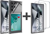 BixB Coque avec porte-cartes et 2 films de protection d'écran en verre trempé adaptés pour Samsung Galaxy S24 Ultra - Coque arrière antichoc - Transparente