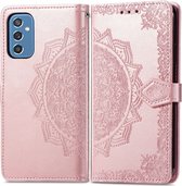 Coque Samsung Galaxy M52 - Mobigear - Série Mandala - Bookcase en Cuir Artificiel - Or Rose - Coque Convient pour Samsung Galaxy M52