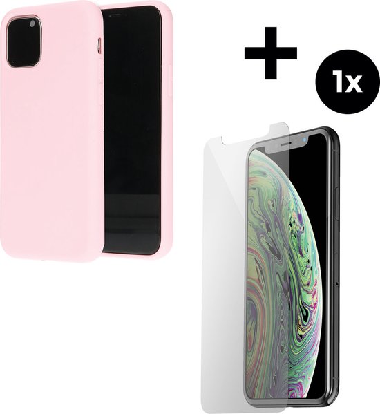 Mobiparts Coque en silicone pour Apple iPhone 11 Pro avec 1 film protecteur d'écran en Glas trempé - Rose