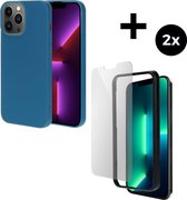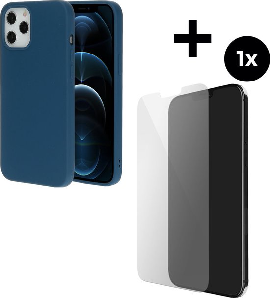 Mobiparts Coque en silicone pour Apple iPhone 12 Pro avec 1 film protecteur d'écran en Glas trempé - Blauw
