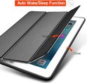 Cette coque Tri-Fold avec dos flexible convient à l'iPad 9.7 (2018) / iPad 9.7 (2017) / iPad Air 2 (2015) / iPad Air 1 (2014) et garantit que votre iPad reste exempt de rayures et de bosses. Le design est fermé tout autour afin que le dos et l'écran soient bien protégés. Les coins et les bords sont renforcés et équipés de pare- chocs spéciaux . Cela signifie qu'il peut résister à un choc et que vous pouvez emporter votre iPad partout en toute tranquillité.