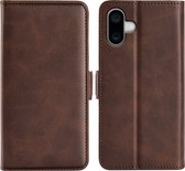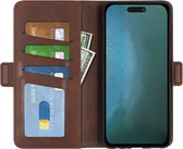 Étui portefeuille en cuir PU adapté pour iPhone 16 Pro - marron foncé - Fermeture magnétique - Housse de Luxe - Couvrant l'écran - Porte-cartes - Espèces - Espèces - Cartes