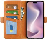 Étui portefeuille en cuir PU pour iPhone 16 -- Fermeture magnétique - Housse de Luxe - Couvrant l'écran - Porte-cartes - Espèces - Espèces - Cartes marron clair