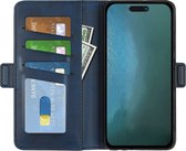Étui portefeuille en cuir PU Étui adapté pour iPhone 16 - bleu - Fermeture magnétique - Housse de Luxe - Couvrant l'écran - Porte-cartes - Espèces - Espèces - Cartes